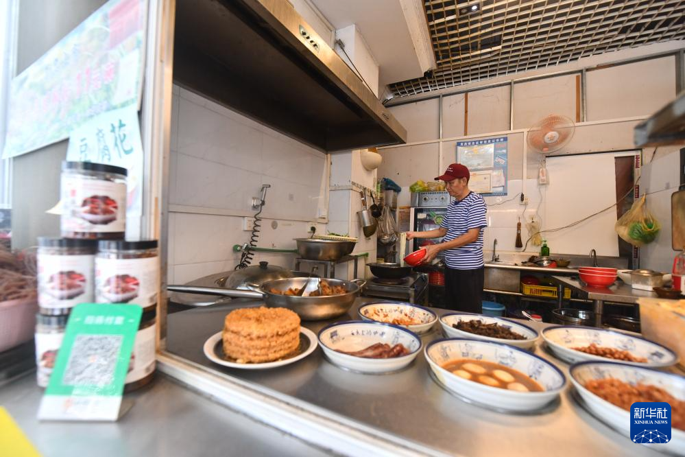 在广西南宁市一家螺蛳粉店,服务员为螺蛳粉添加配料(9月18日摄)。