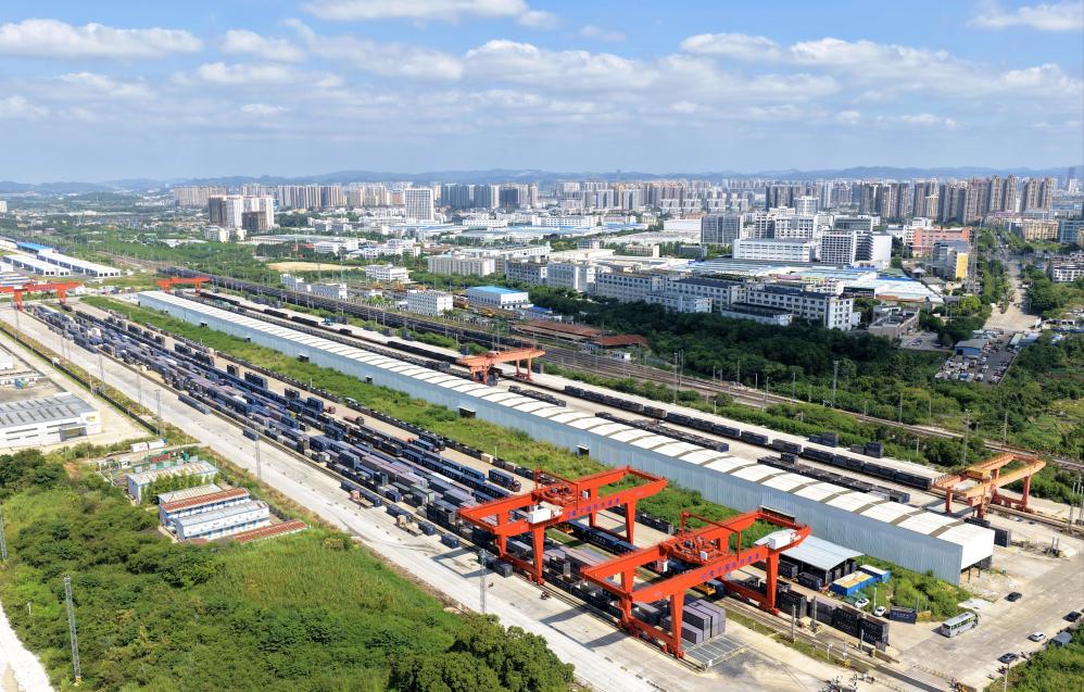 9月23日拍摄的南宁国际铁路港(无人机照片)。