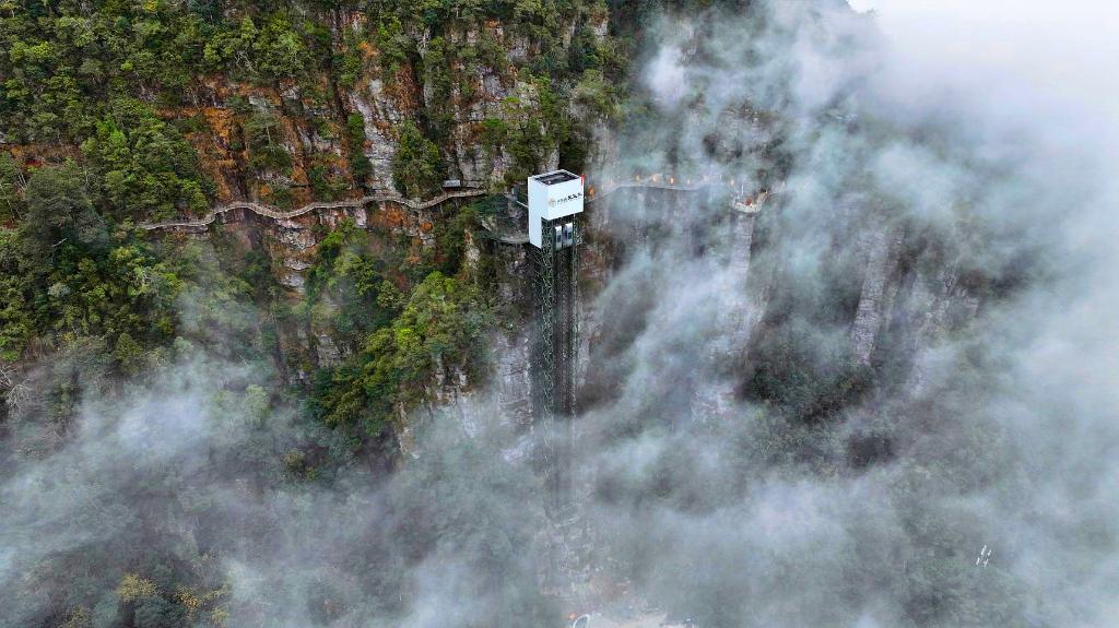 百米悬崖观光电梯。(广西大瑶山盘王界景区供图)