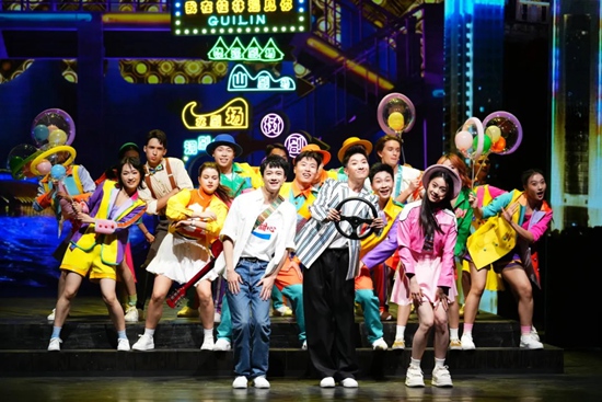 2024年10月26日,2024桂林艺术节开幕式暨首届欧阳予倩戏剧奖颁奖典礼在广西省立艺术馆举行,中外演员共同演绎音乐剧《桂林City Walk》