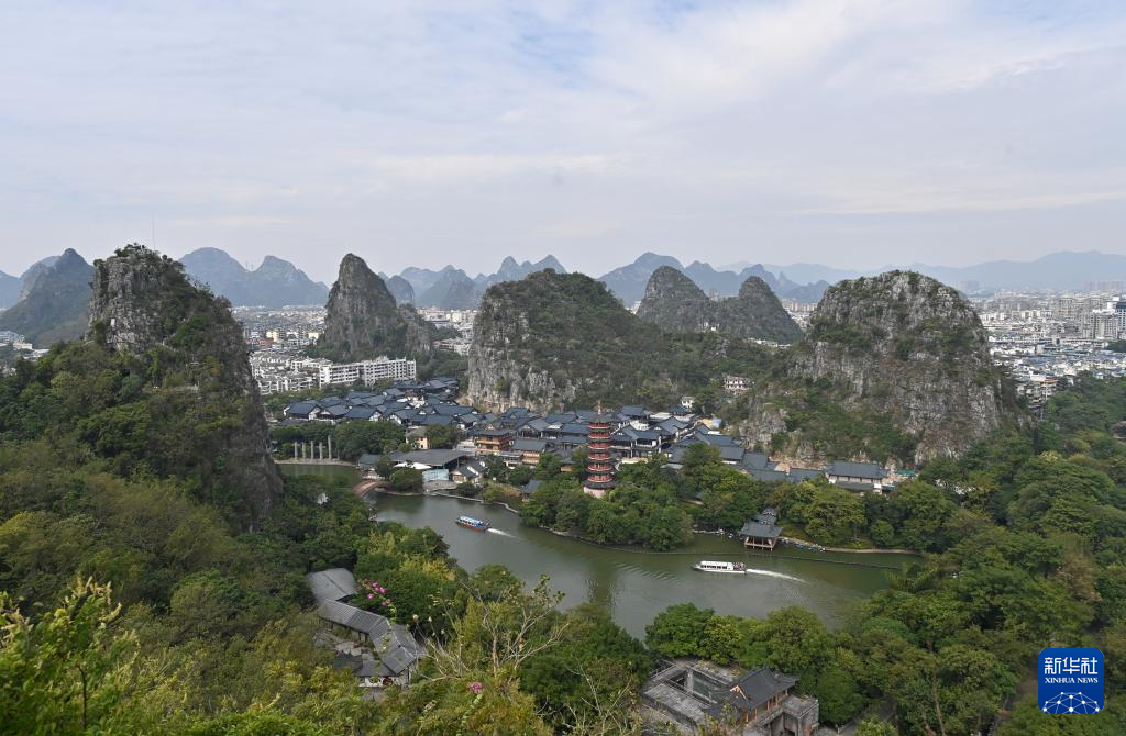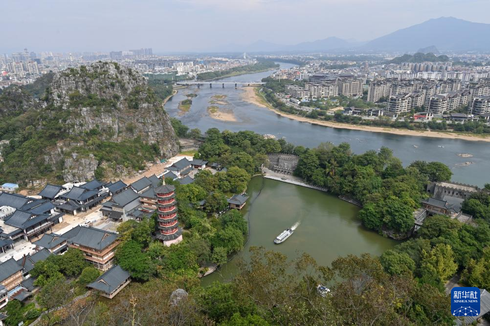 眼下,广西桂林市气候凉爽,风光优美,吸引大批游客前来游览观光。