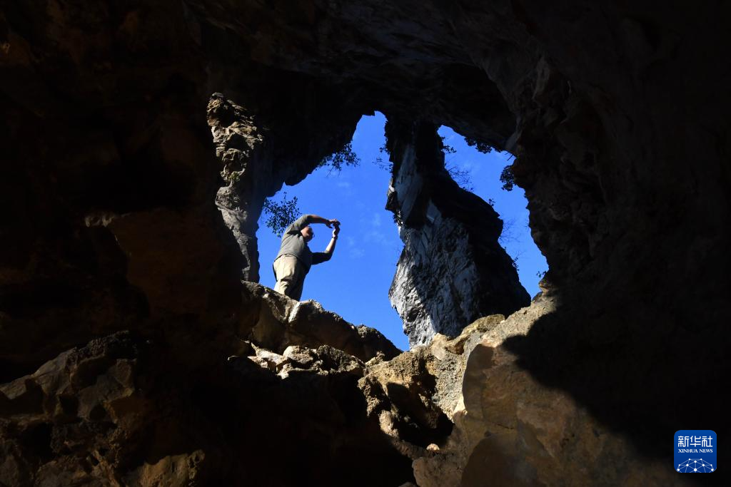 游客在柳州市柳江区百朋镇百朋村酒壶山上游玩(11月23日摄)。