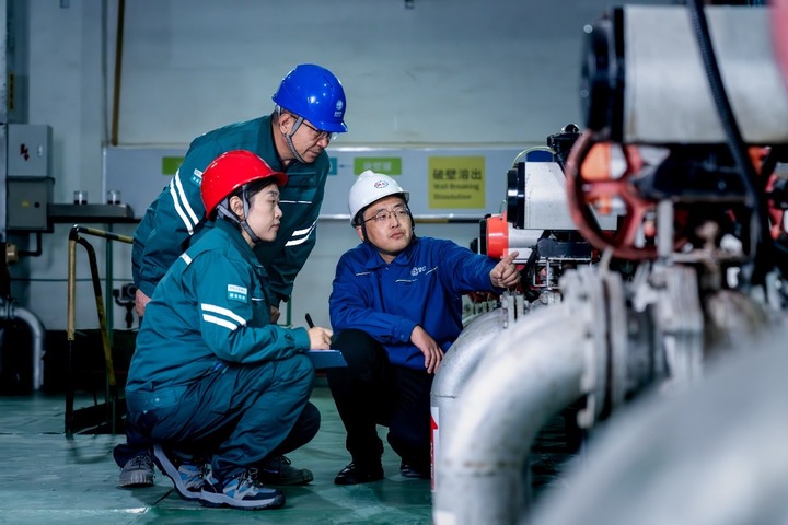 图为国网青岛市黄岛区供电公司工作人员对明月海藻集团消化锅设备进行用电安全检查(受访单位供图)